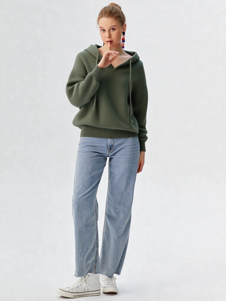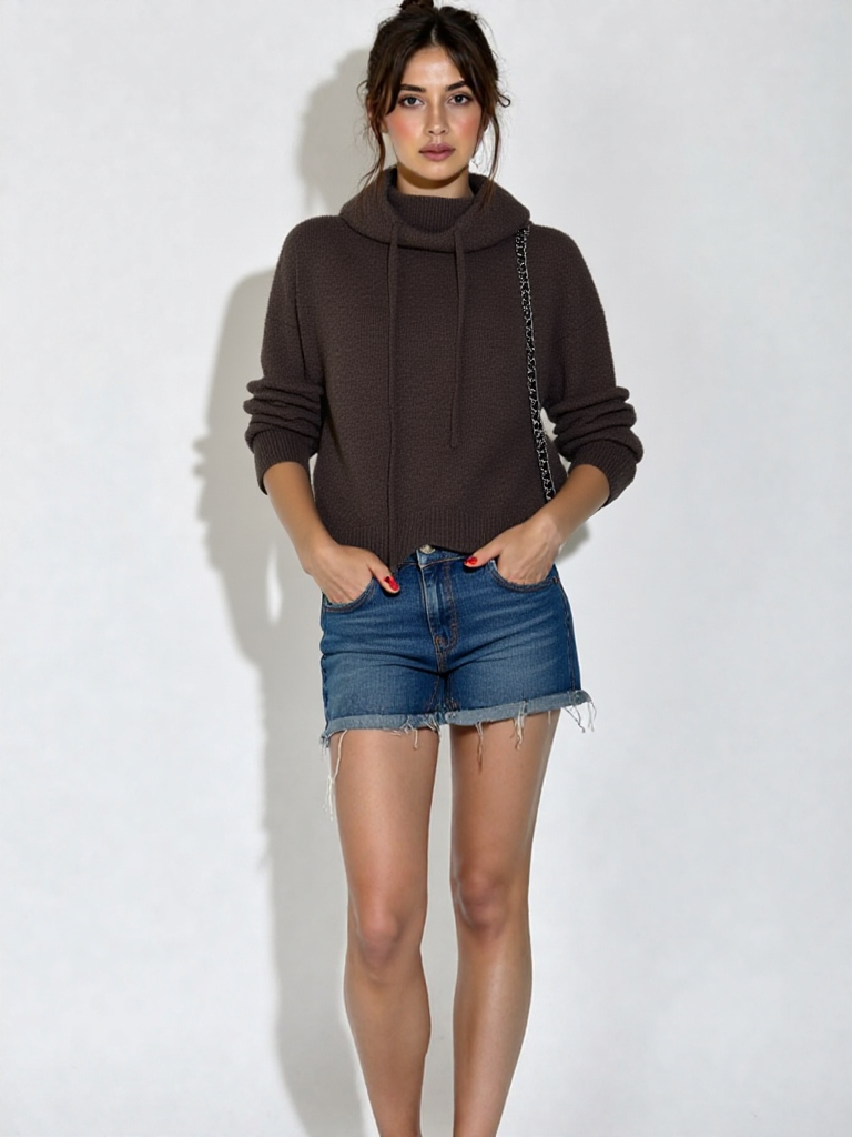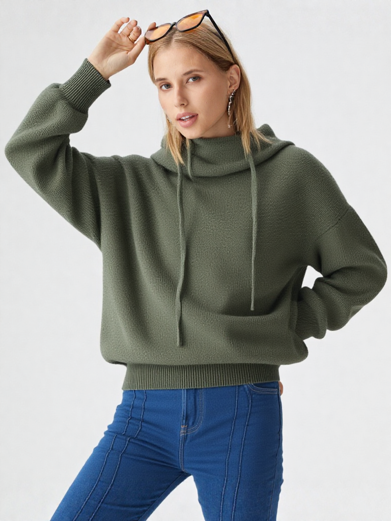 Den strikkede damehoodie kombinerer komfort med et moderne, velplejet look. Den normale pasform og det tunge strik giver varme og komfort på kølige dage, mens hætten tilføjer et moderne og funktionelt detalje. Velegnet til både en afslappet arbejdsdag og afslappede stunder udenfor.