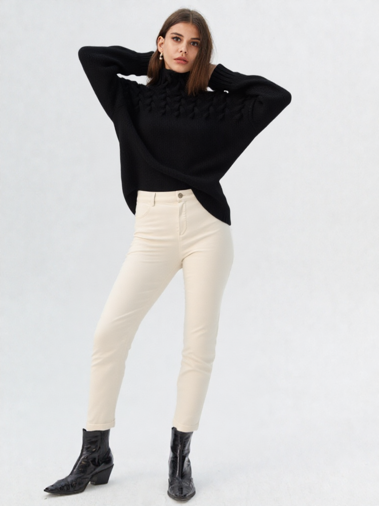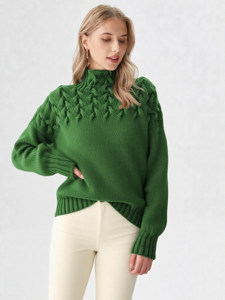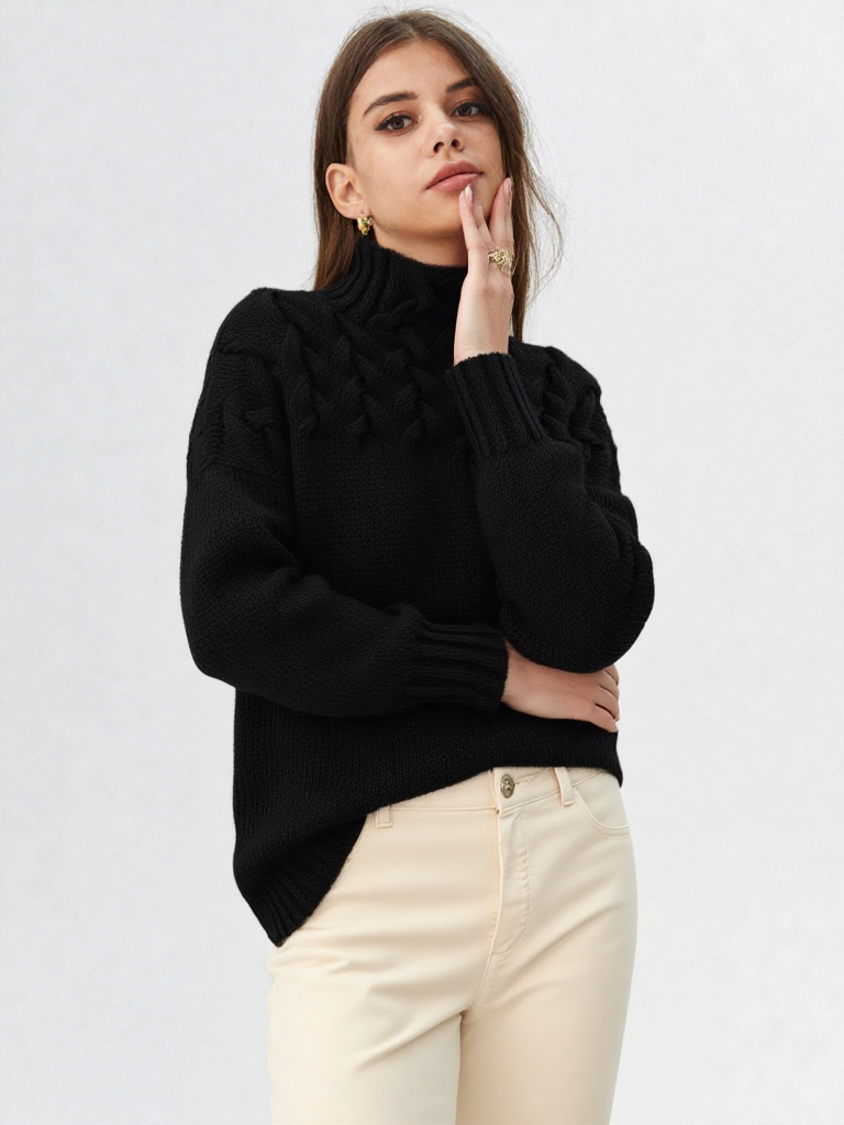 Strikket dametrøje med høj hals